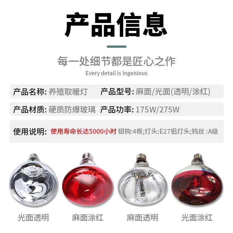📚 仔猪用保温灯养殖场专用加厚灯泡小鸡育雏加热烤灯兽用取暖保暖灯