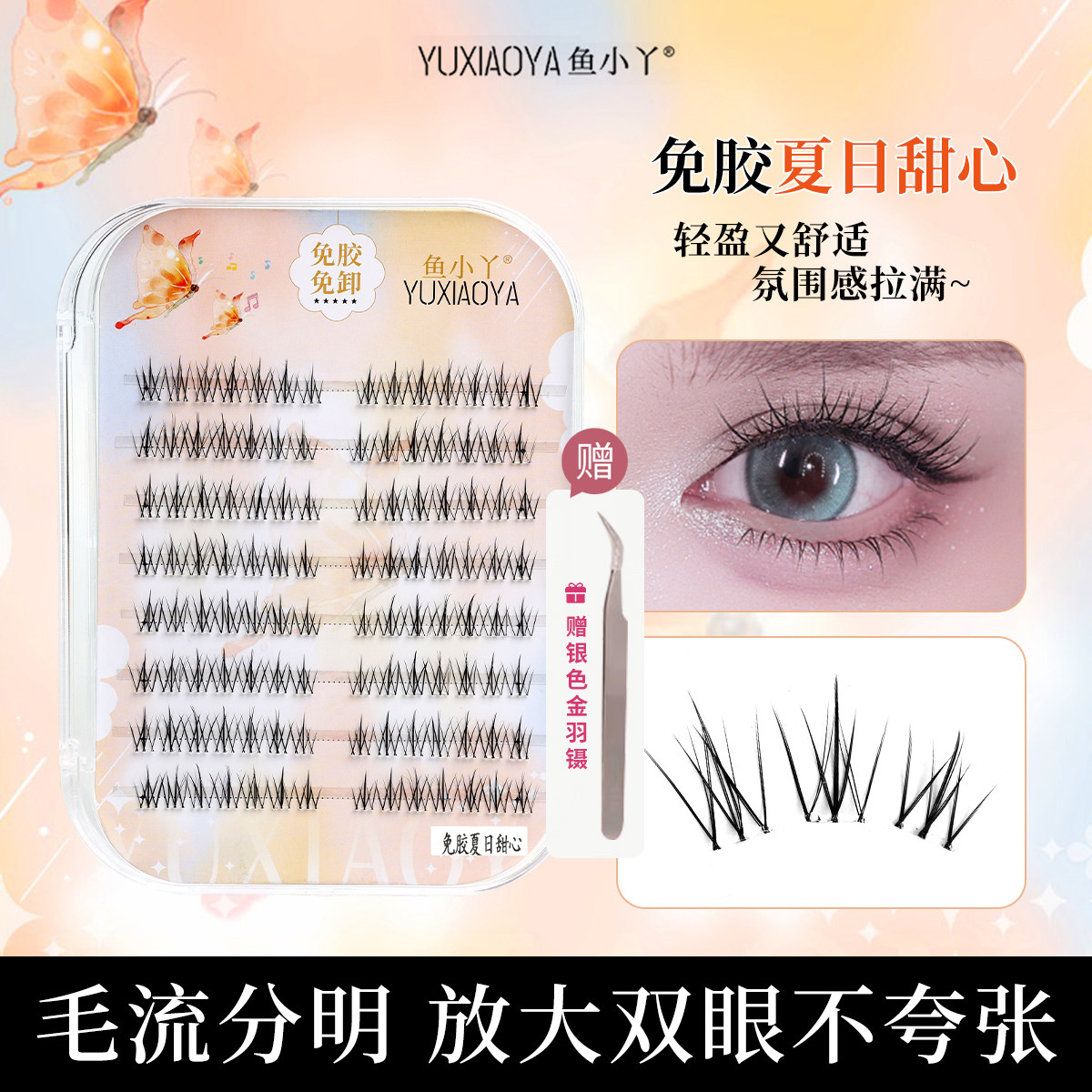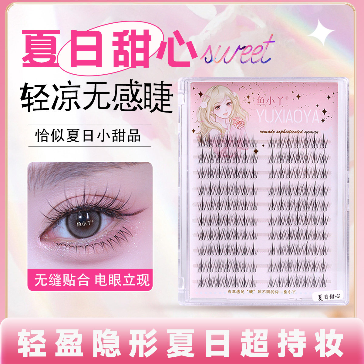 📚 鱼小丫假睫毛夏日甜心上睫毛分段韩系自然卷翘自然仿真假睫毛免胶