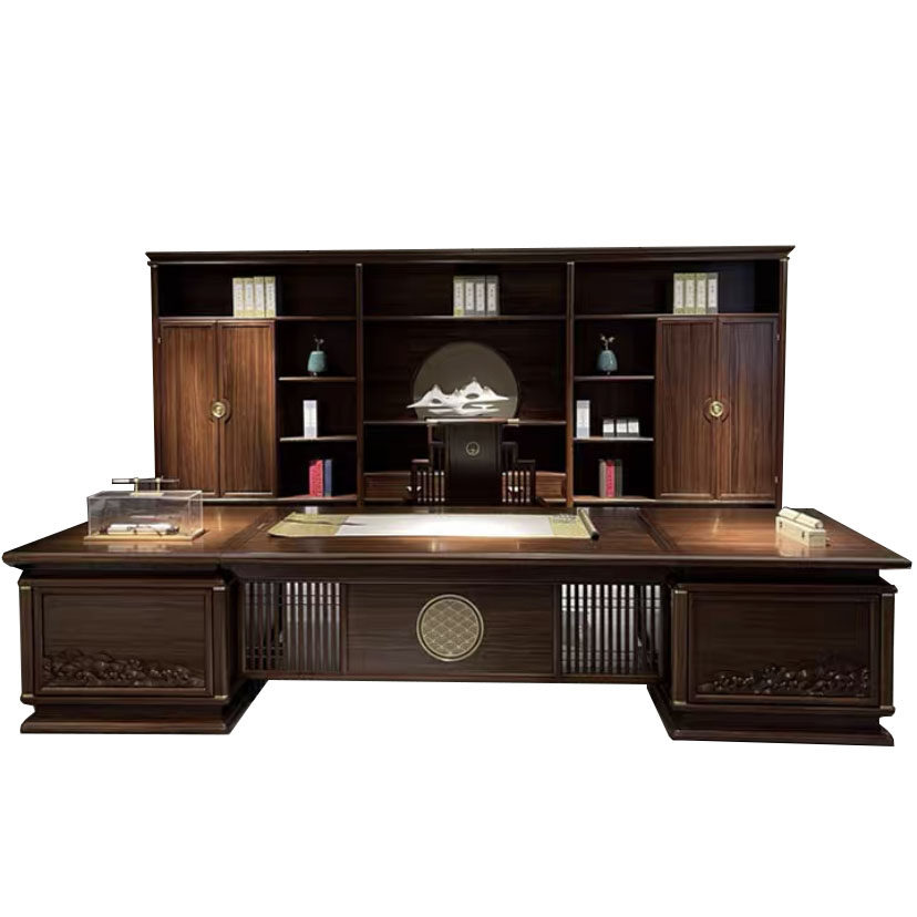 📚 新中式实木大班台老板桌办公桌椅组合乌金木花梨木总裁总经理定制