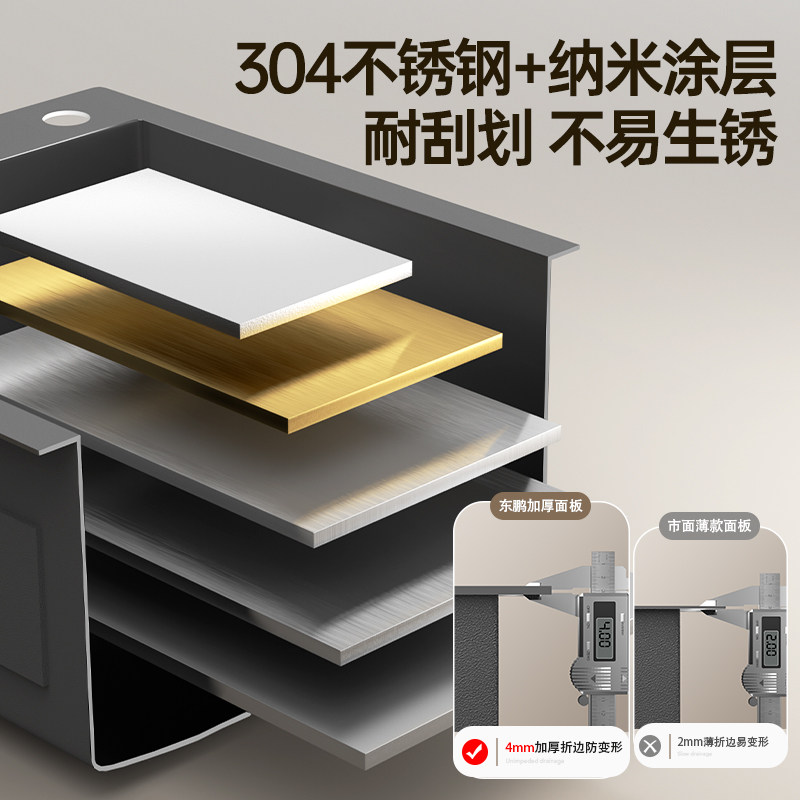 📚 东鹏304不锈钢水槽洗菜盆厨房黑纳米加厚家用小单槽手工洗菜池