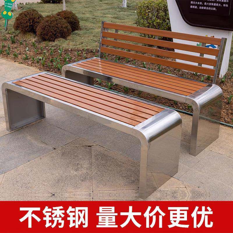 📚 公园外长椅庭院椅锈钢防腐木塑不木凳子小区室户外休息02靠背长条