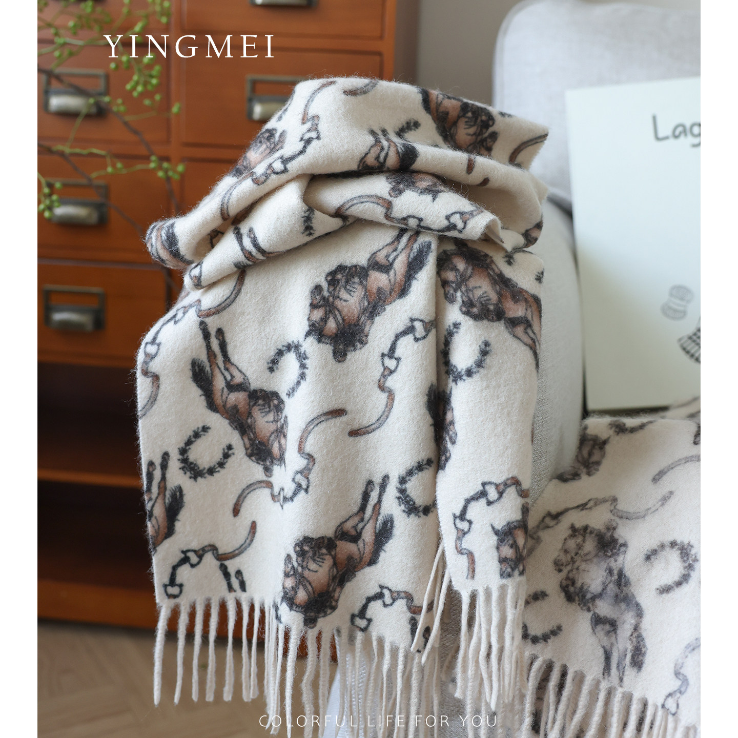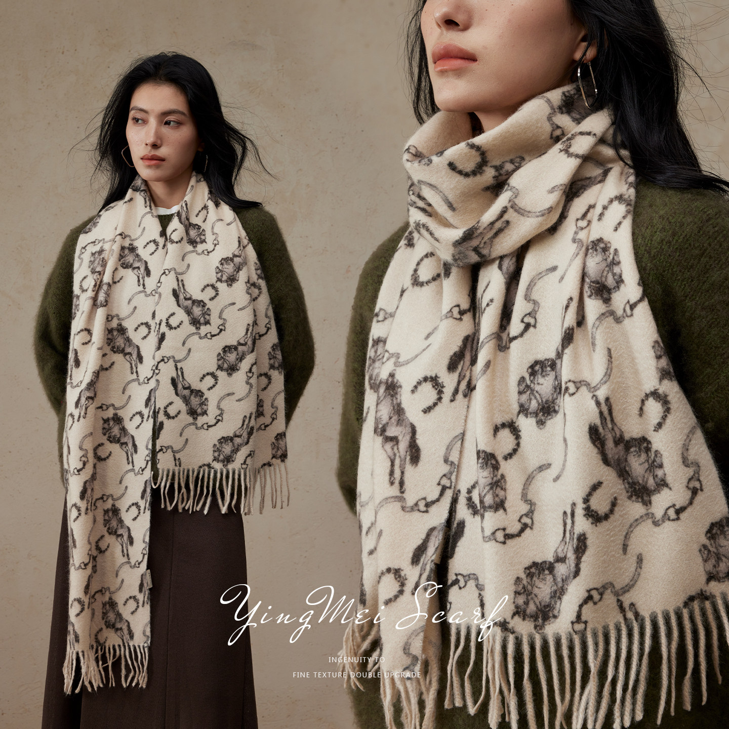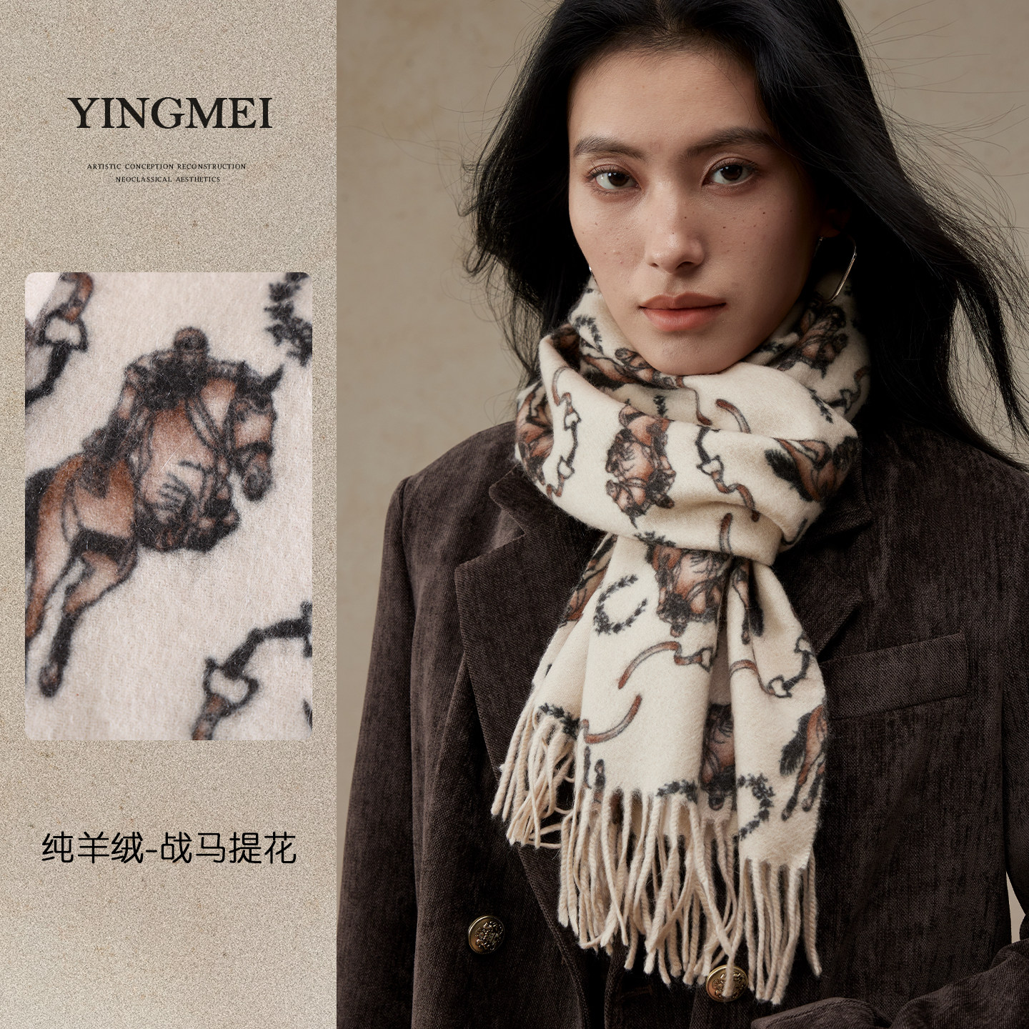 📚 盈妹自由中世纪丨100%纯羊绒英伦复古战马围巾高级感礼盒装围脖女