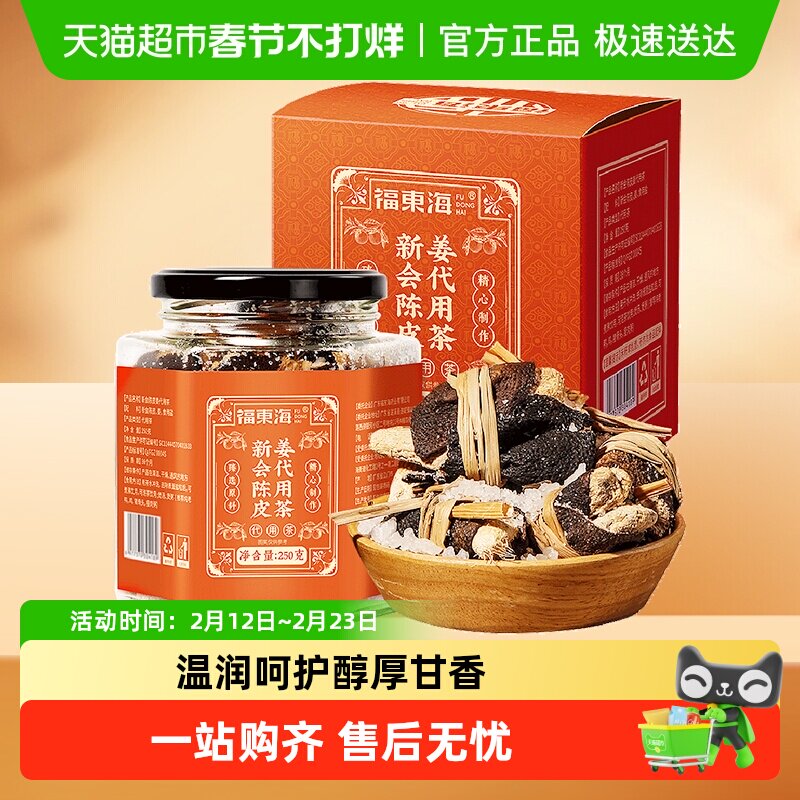 📚 福东海新会陈皮姜代用茶250g瓶广东三宝扎陈皮咸橄榄禾秆草传手工