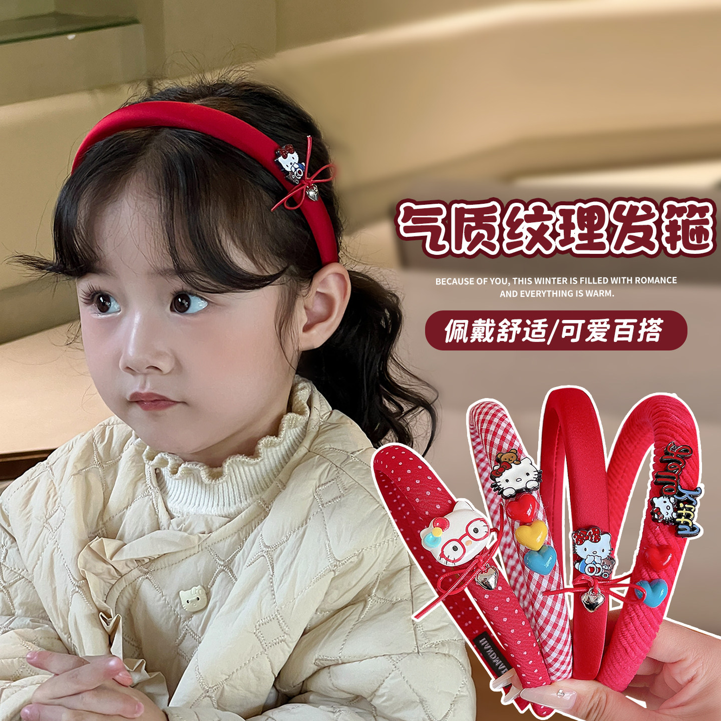 📚 新年红色轻奢波浪女童发箍复古百搭外出带齿儿童头箍高级感高品质
