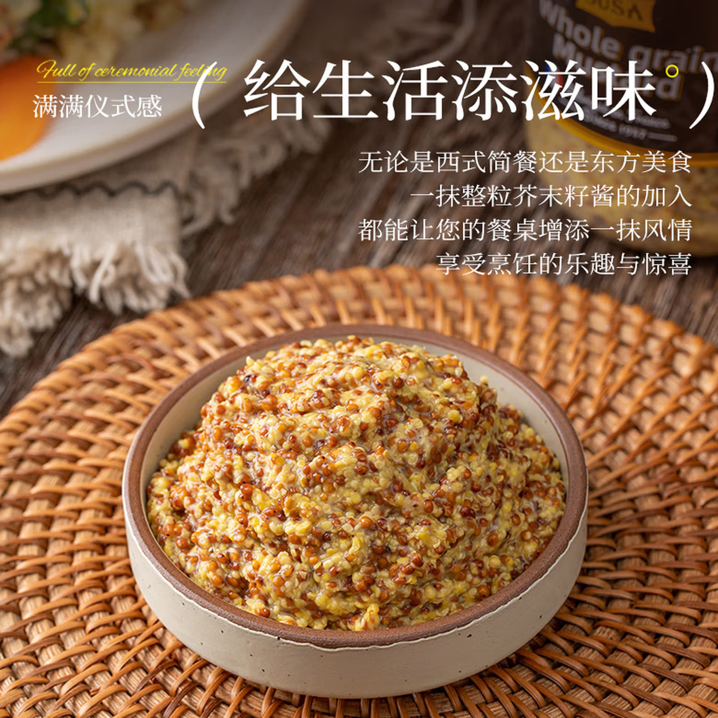 📚 欧萨整粒芥末籽酱820g法国原装进口粗粒大藏黄芥末烘焙第戎芥末酱