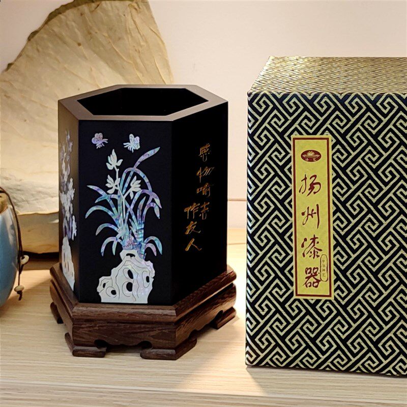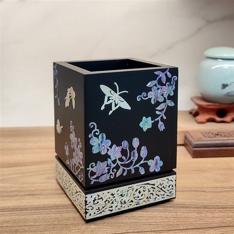 📚 螺钿漆器笔筒送老师书房办公桌面摆件木质复古中国风 教师节礼物