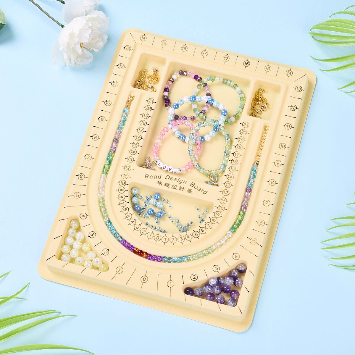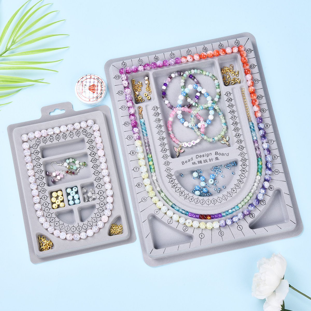 📚 项链手链手串珠宝设计盘塑料植绒串珠盘DIY工具台尺寸刻度测量盘