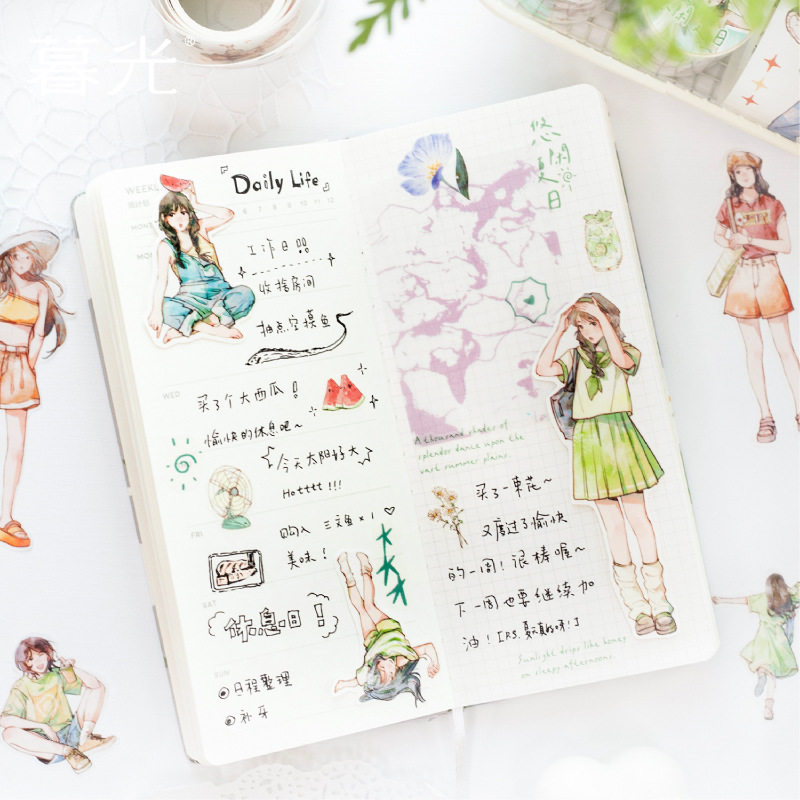 📚 暮光 生活组曲系列模切和纸人物胶带分装(夏季款)夏季少女人物