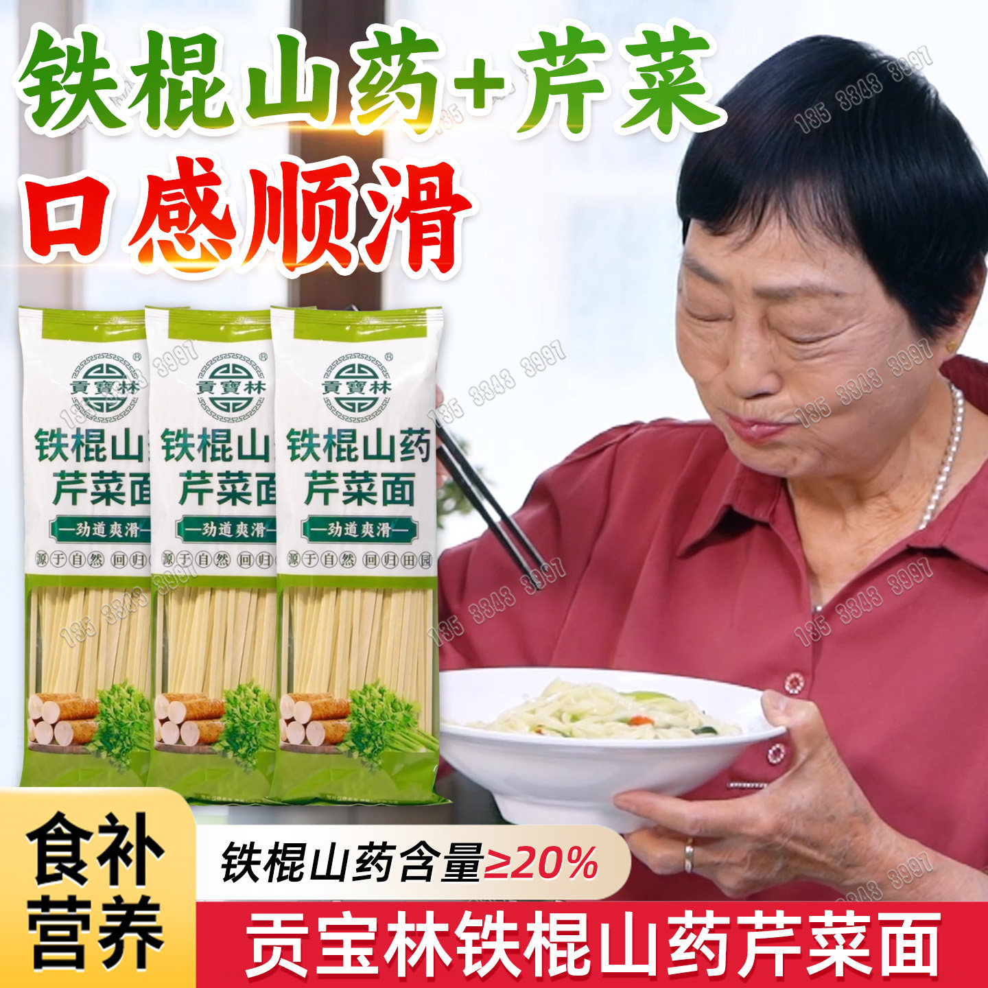 📚 贡宝林铁棍山药芹菜面电视同款纯淮怀山药营养劲道挂面条整箱批发