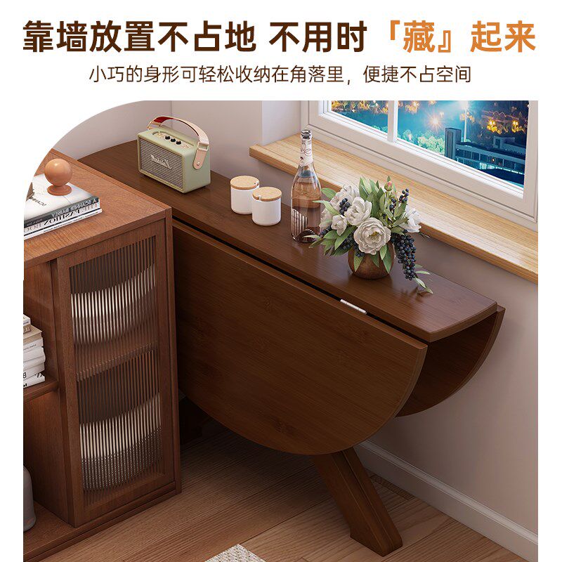 📚 可折叠桌子餐桌家用小户型实木吃饭圆桌多功能新型靠墙折叠小桌子