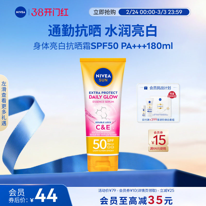 57¥ MF278 ainQUqZdN6U¥ https://m.tb.cn/h.7A89PNA 妮维雅泰国防晒霜SPF50焕白身体素颜霜清爽180ml --------------------- 【原售价】199元 【现售价】79元。