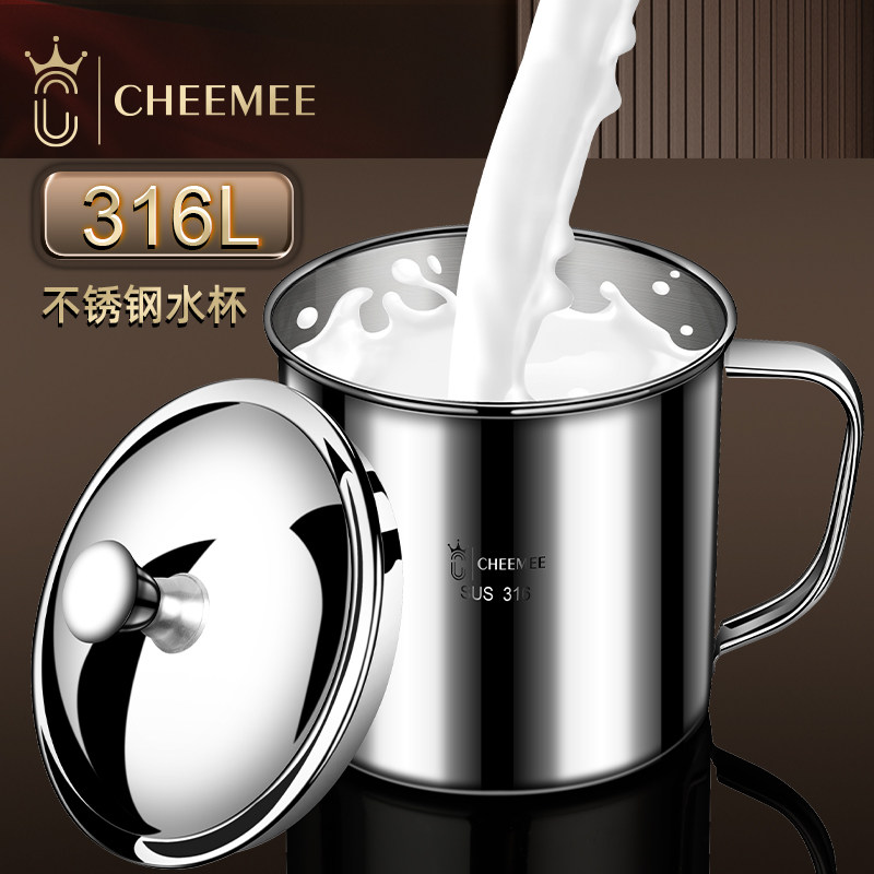 📚 食品级316不锈钢水杯带盖茶杯大号泡茶缸老式口杯小号杯子幼儿园