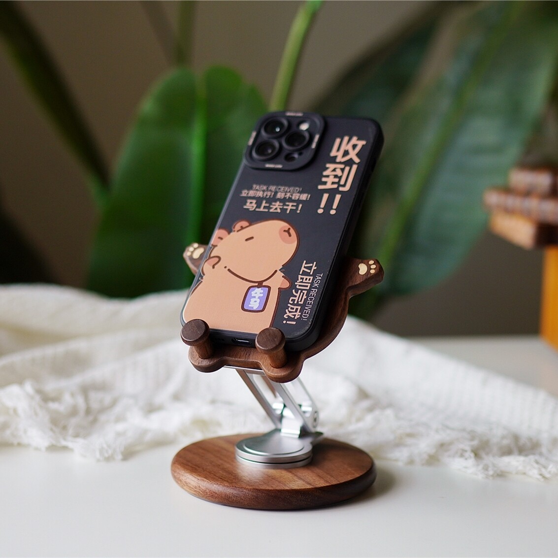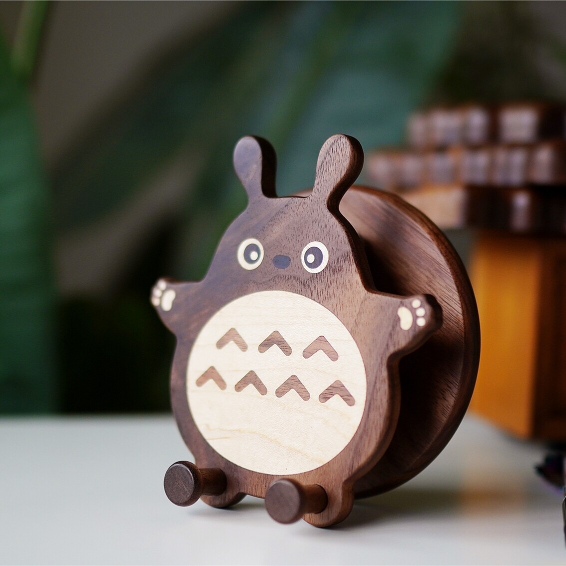 📚 龙猫手机支架实木桌面摆件可爱创意礼物原木风手机支架装饰品家居