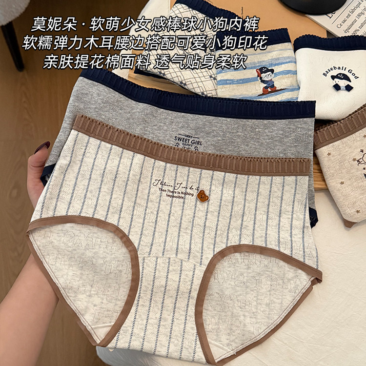 📚 莫妮朵棒球帽小狗内裤女纯棉2026新款10A级抑菌加长裆女士三角裤