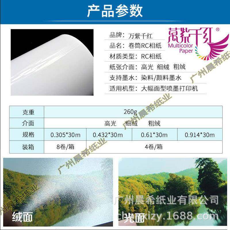 📚 万紫4千EKK红卷光.材RC双面防水061相片纸2寸36寸高细绒纸3寸管芯