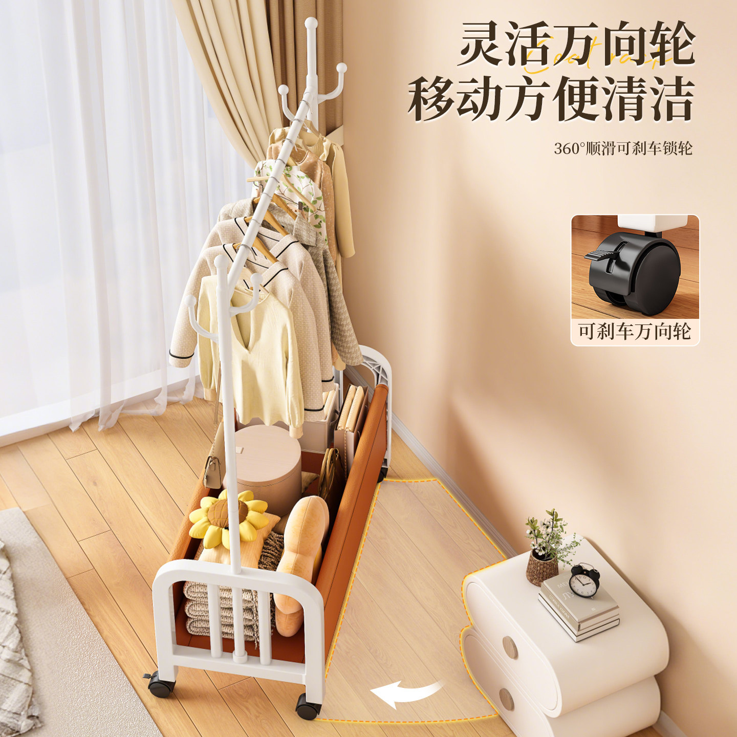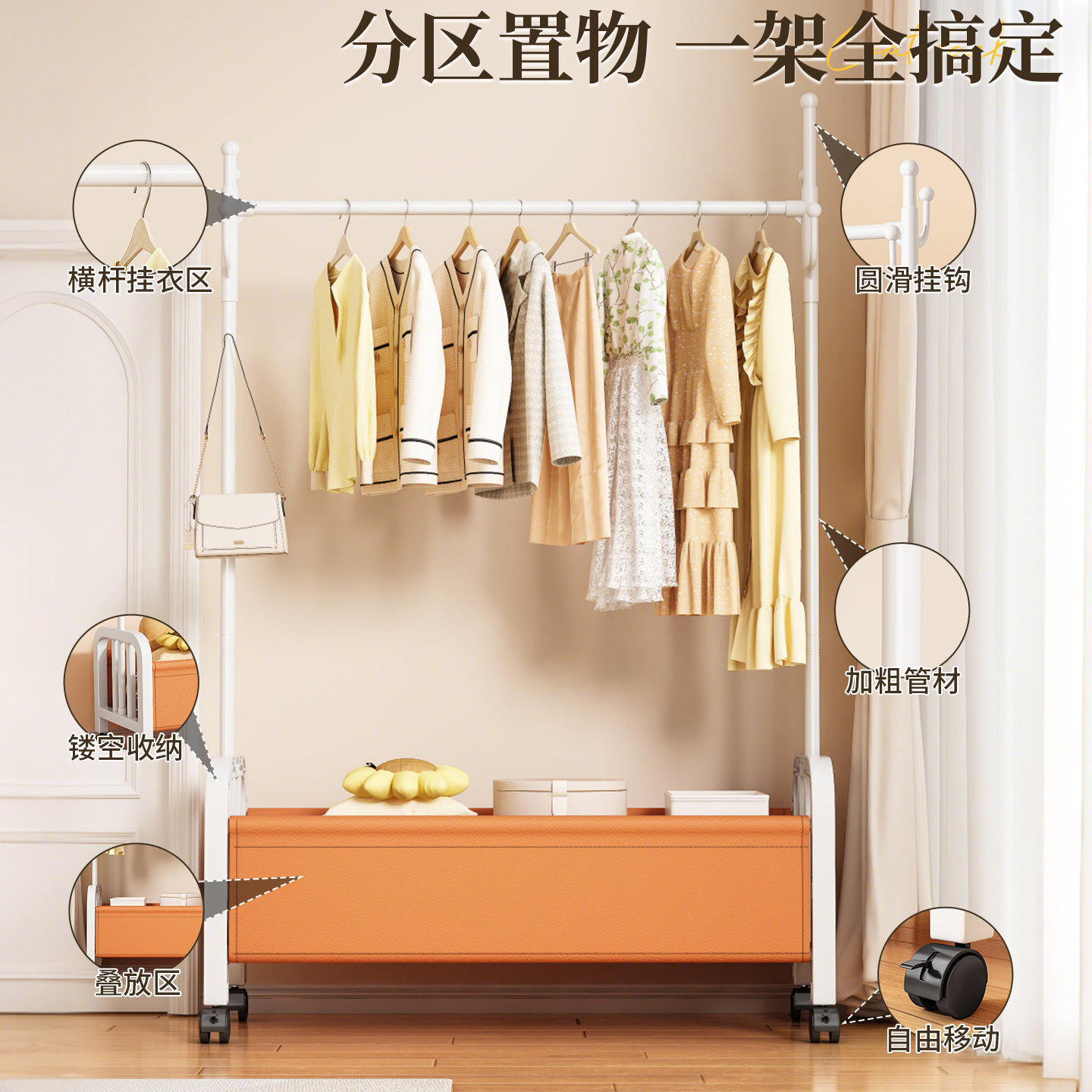 📚 简易衣帽架落地卧室家用挂衣架可移动室内晾衣架宿舍收纳衣架挂杆