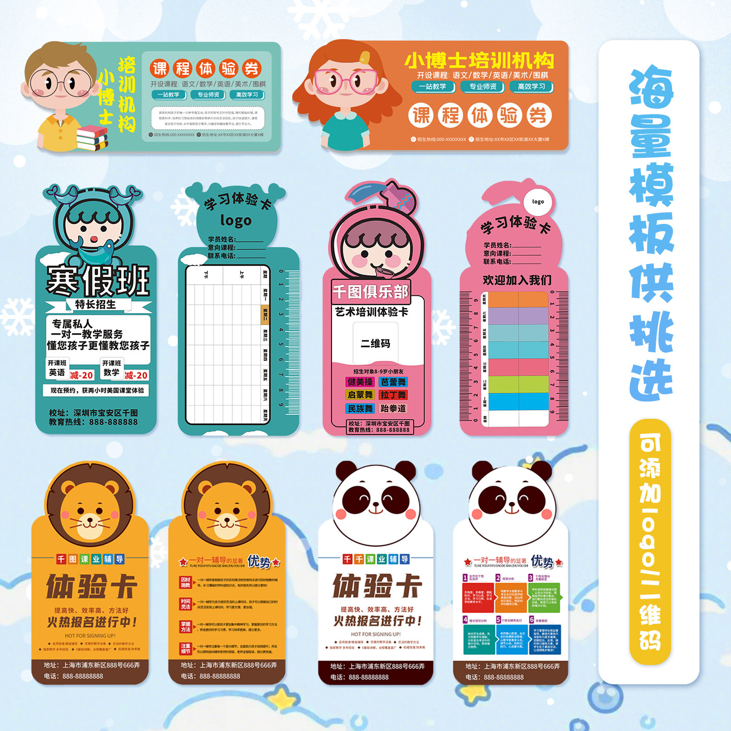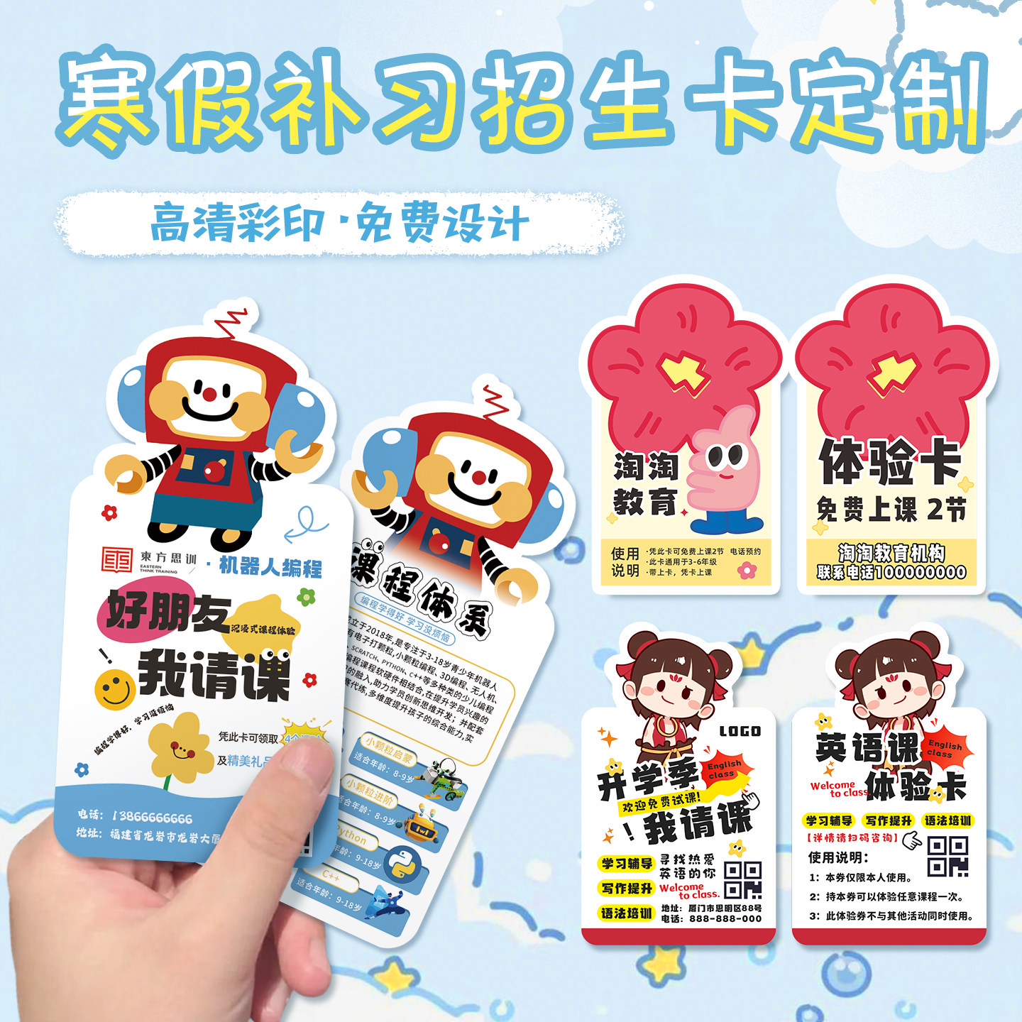 📚 寒假补习班体验卡定制培训机构招生异形宣传卡设计美术书法兴趣班课程试听邀请卡印刷幼小衔接试课优惠卡订做