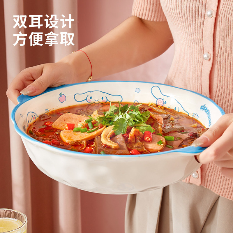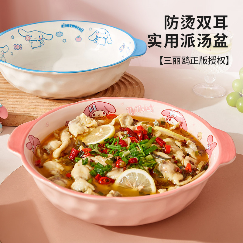 📚 三丽鸥汤碗煲汤喝汤专用酸菜鱼大盆陶瓷排骨汤水煮鱼家用双耳面碗