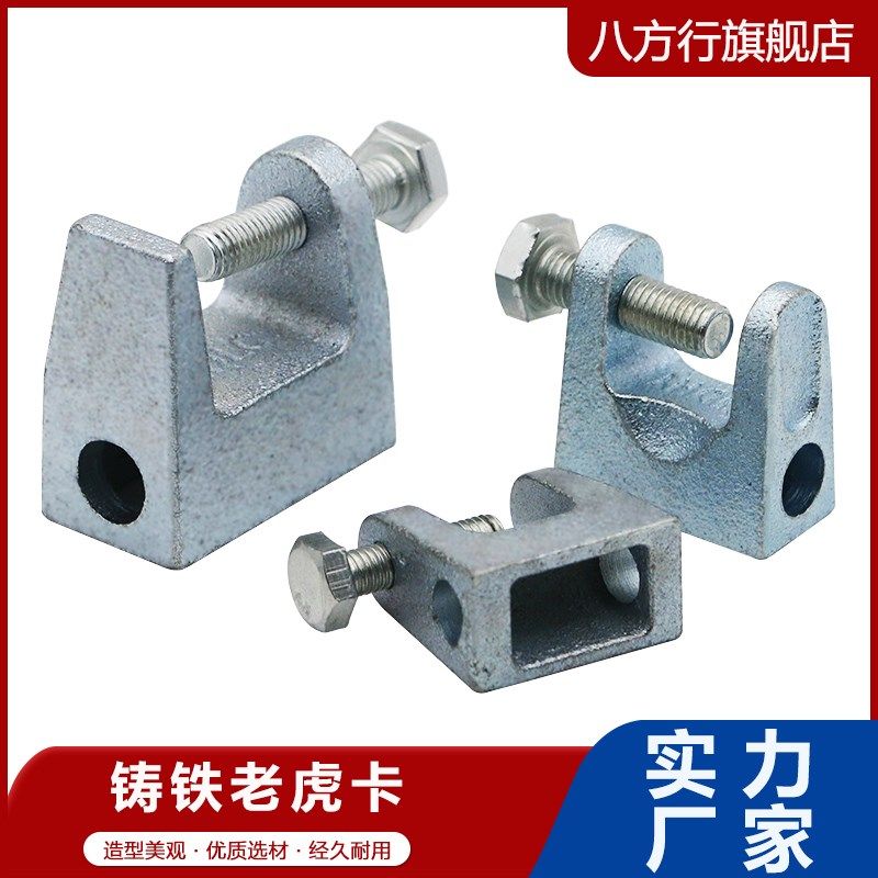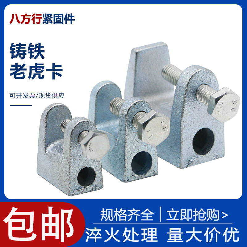 📚 镀锌铸铁老虎卡方形C型钢丝杆吊卡H槽钢方钢挂钩固定夹铁皮虎口夹