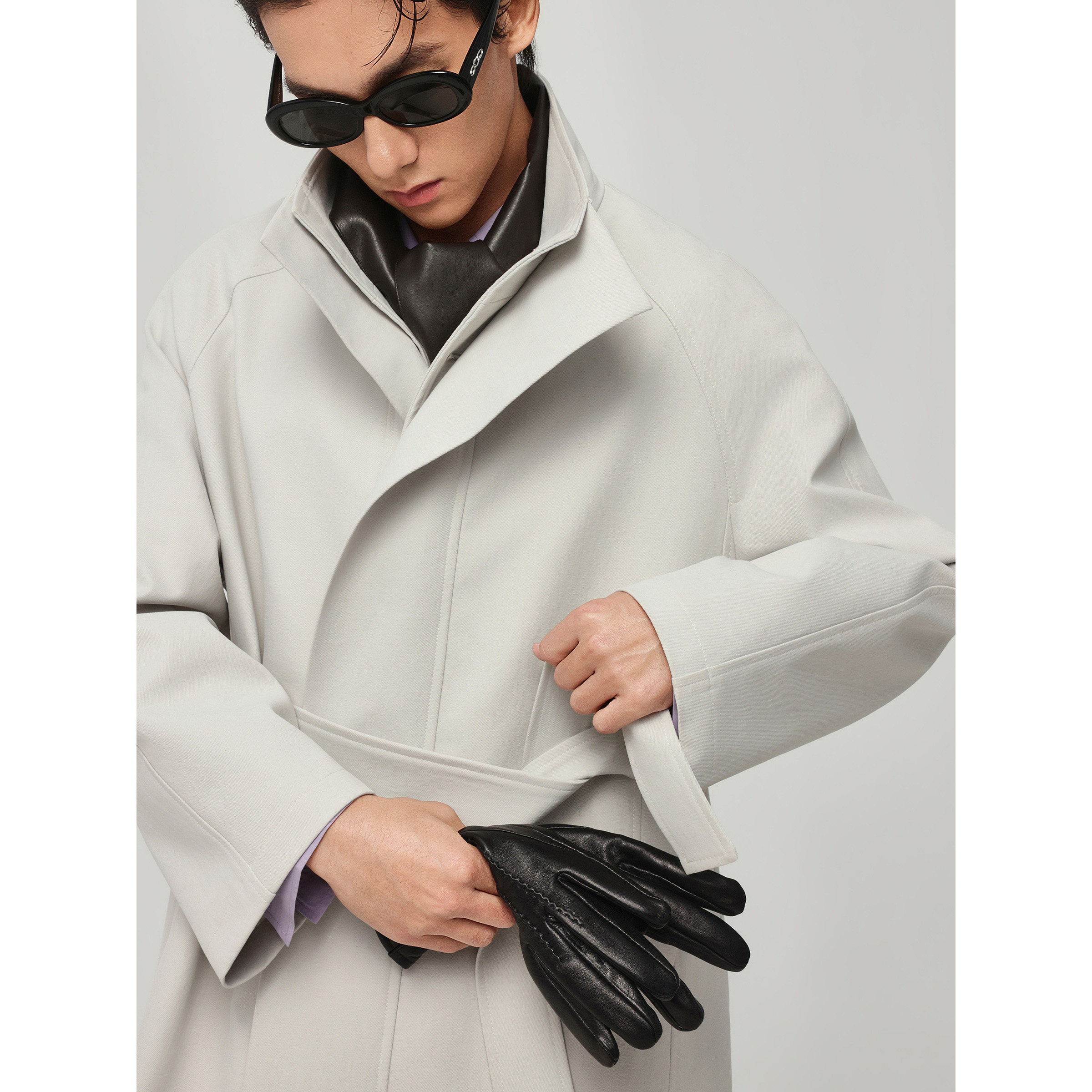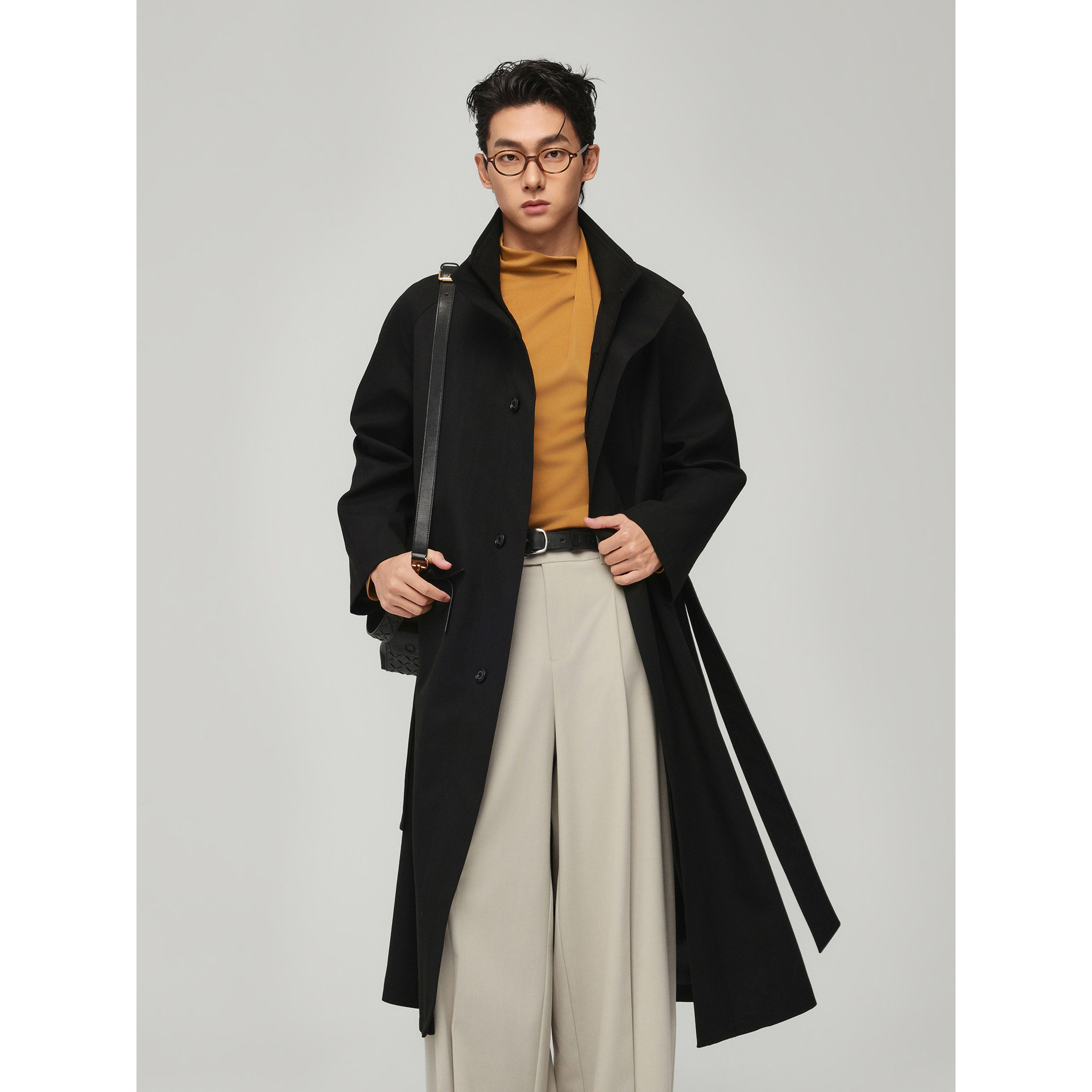 📚 w2x2026春季新款立领宽松腰带款风衣男长款外套美式高级感披风潮