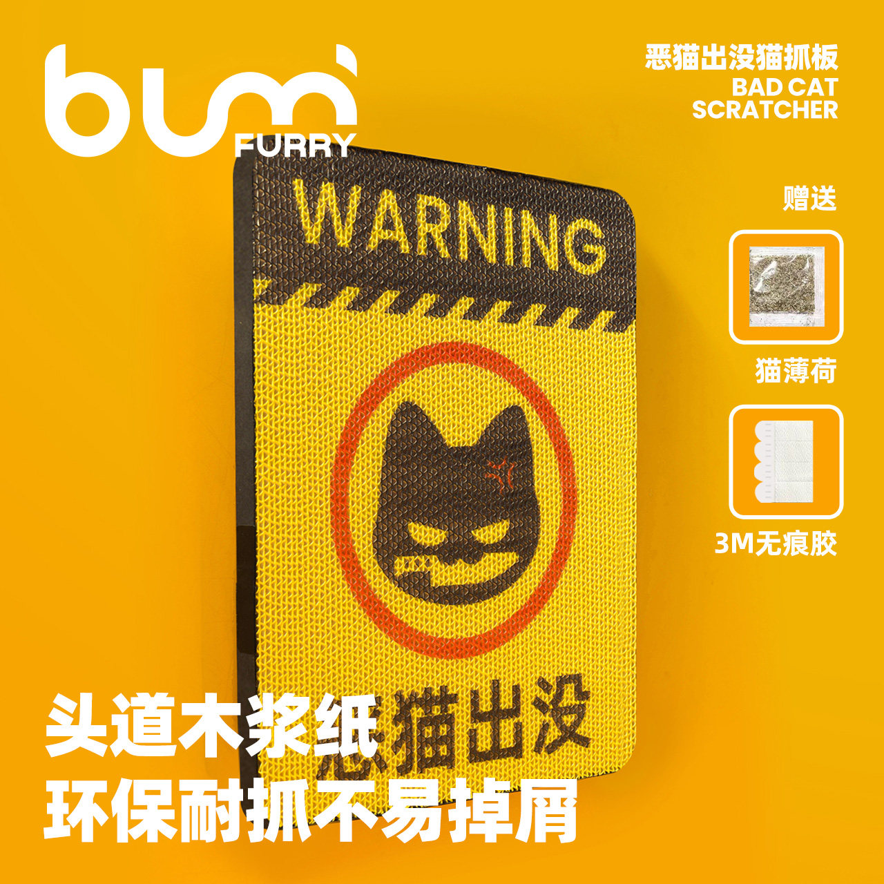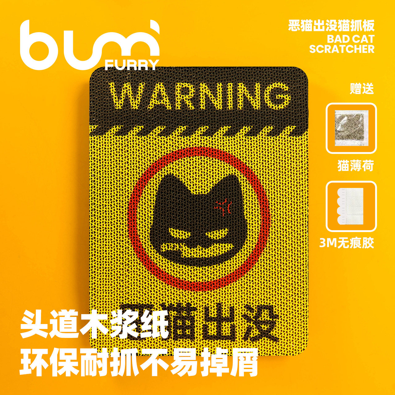 📚 FURRYBUM恶猫出没猫抓板瓦楞纸立式贴墙耐磨不易掉屑猫玩具木浆纸