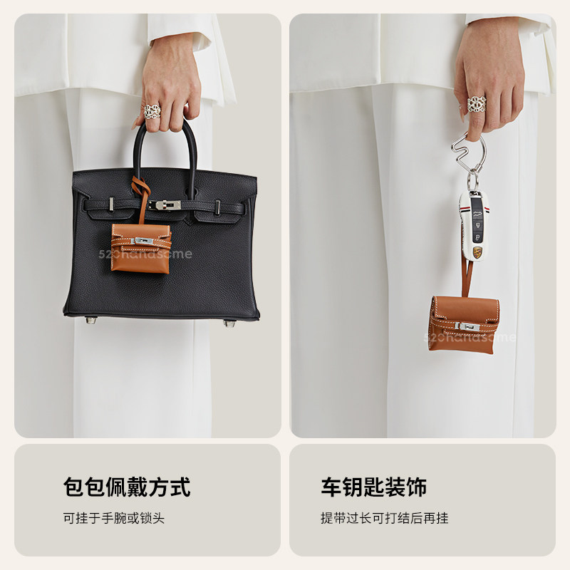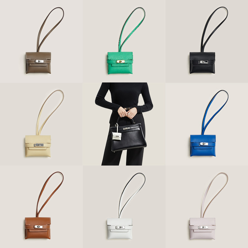 📚 手工缝制轻奢风进口真皮迷你凯莉挂饰零钱包保护套耳机包女包挂件