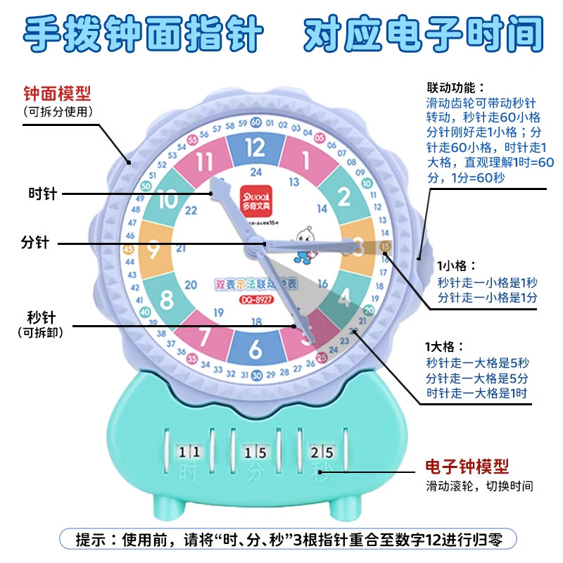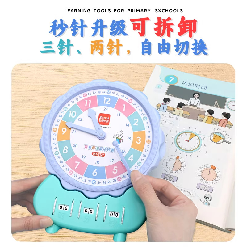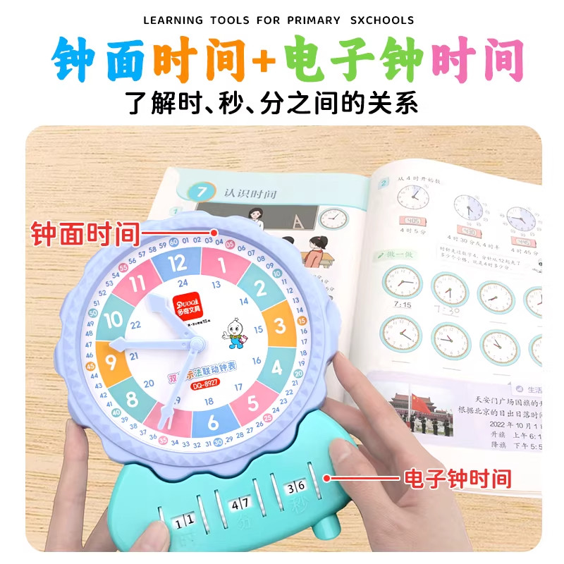 📚 双表示法联动钟表三针电子钟模拟学习器表模型一二三年级时间教具