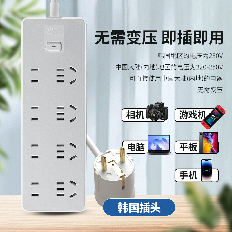 📚 公牛韩国专用插排插座韩国转换插头留学旅行用韩国济州岛排插线板