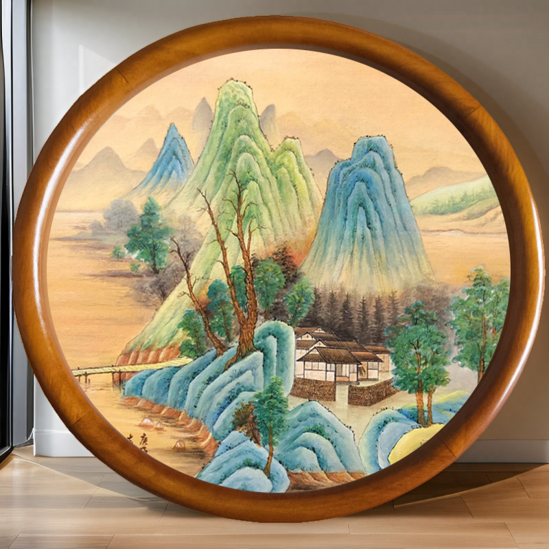 📚 实木圆形画框新中式框架圆形框干花框DIY挂墙手工装裱木制定制框