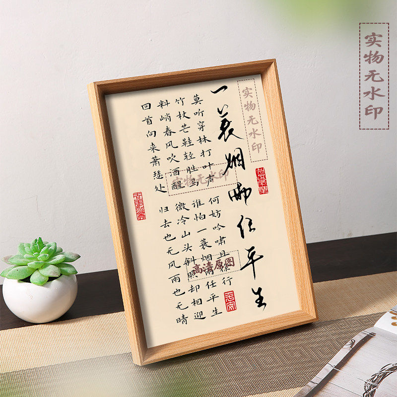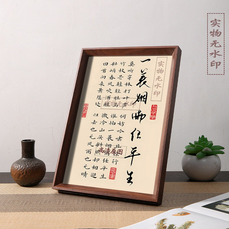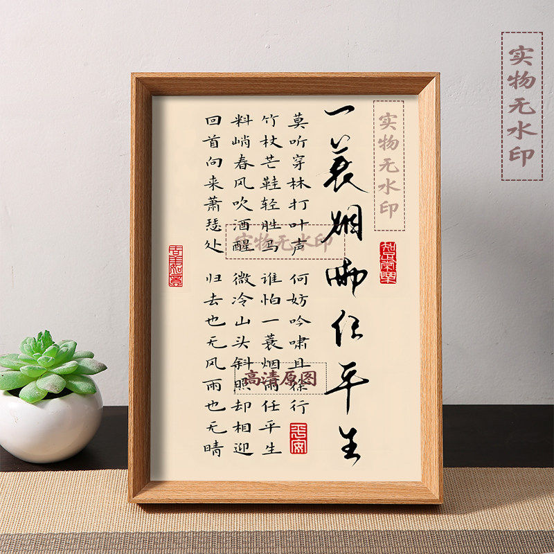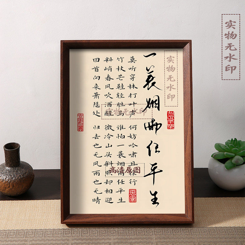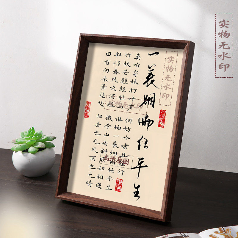 📚 定风波苏轼诗词一蓑烟雨任平生书法摆件相框桌面玄关字画摆台挂画