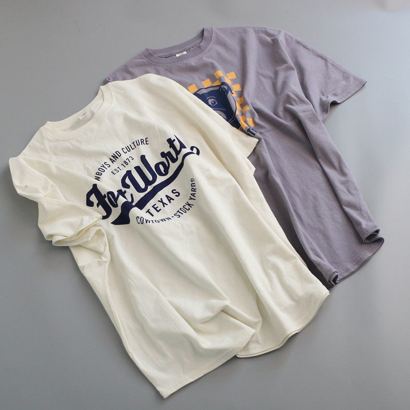 📚 高棉圆领短袖T恤女士字母印花2025年夏季新款薄棉连肩袖宽松上衣