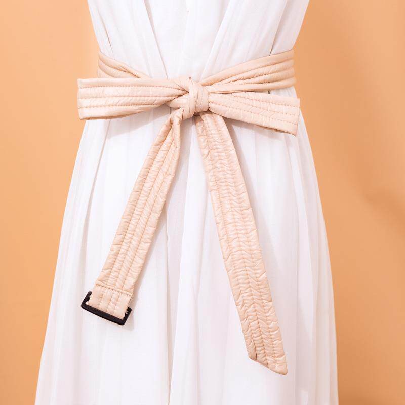 📚 羽绒服专用腰带配件米白色收腰打结绑带女款长款系带棉服腰封束腰