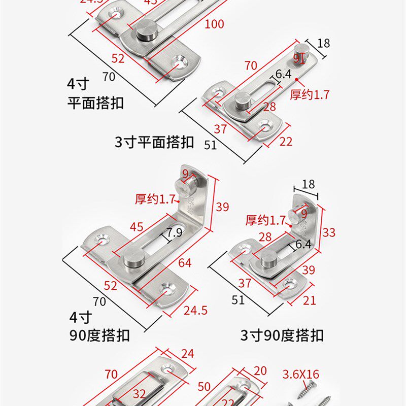 📚 304不锈钢90度门扣直角锁卫生间推拉门插销锁平开门锁扣仓谷门栓