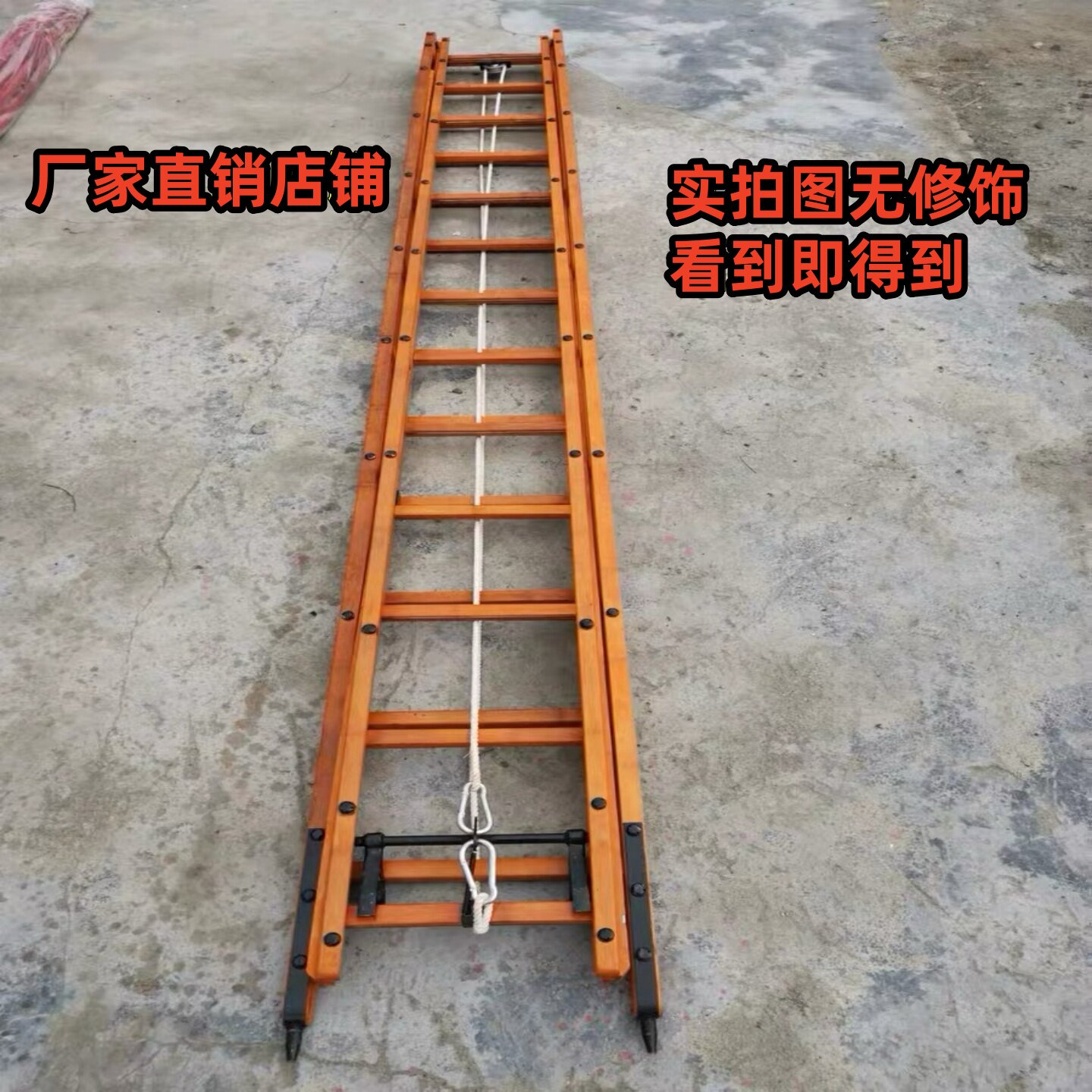 📚 25公斤轻型比武拉梯消防6米二节拉梯单杠梯挂钩梯竹质拉梯伸缩梯