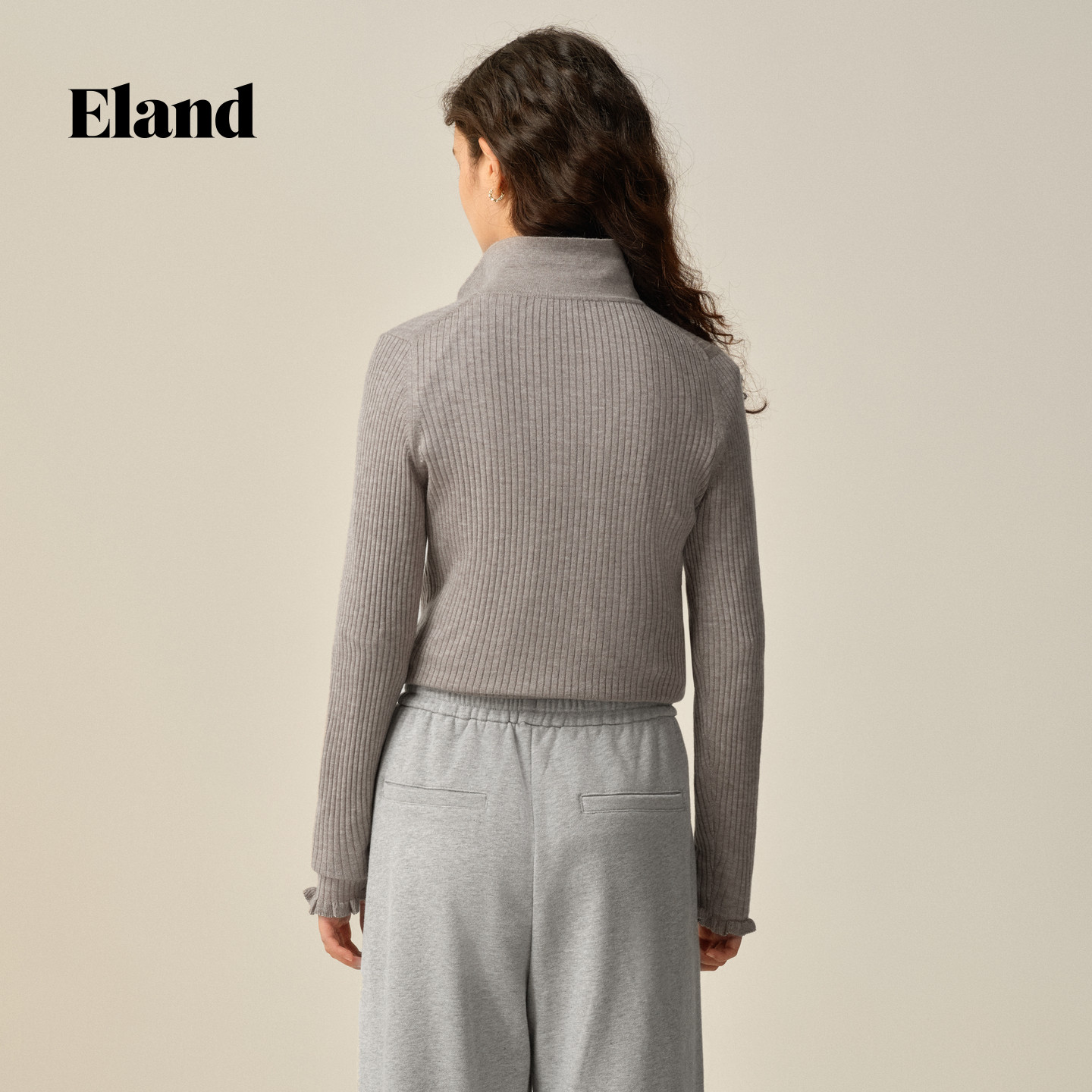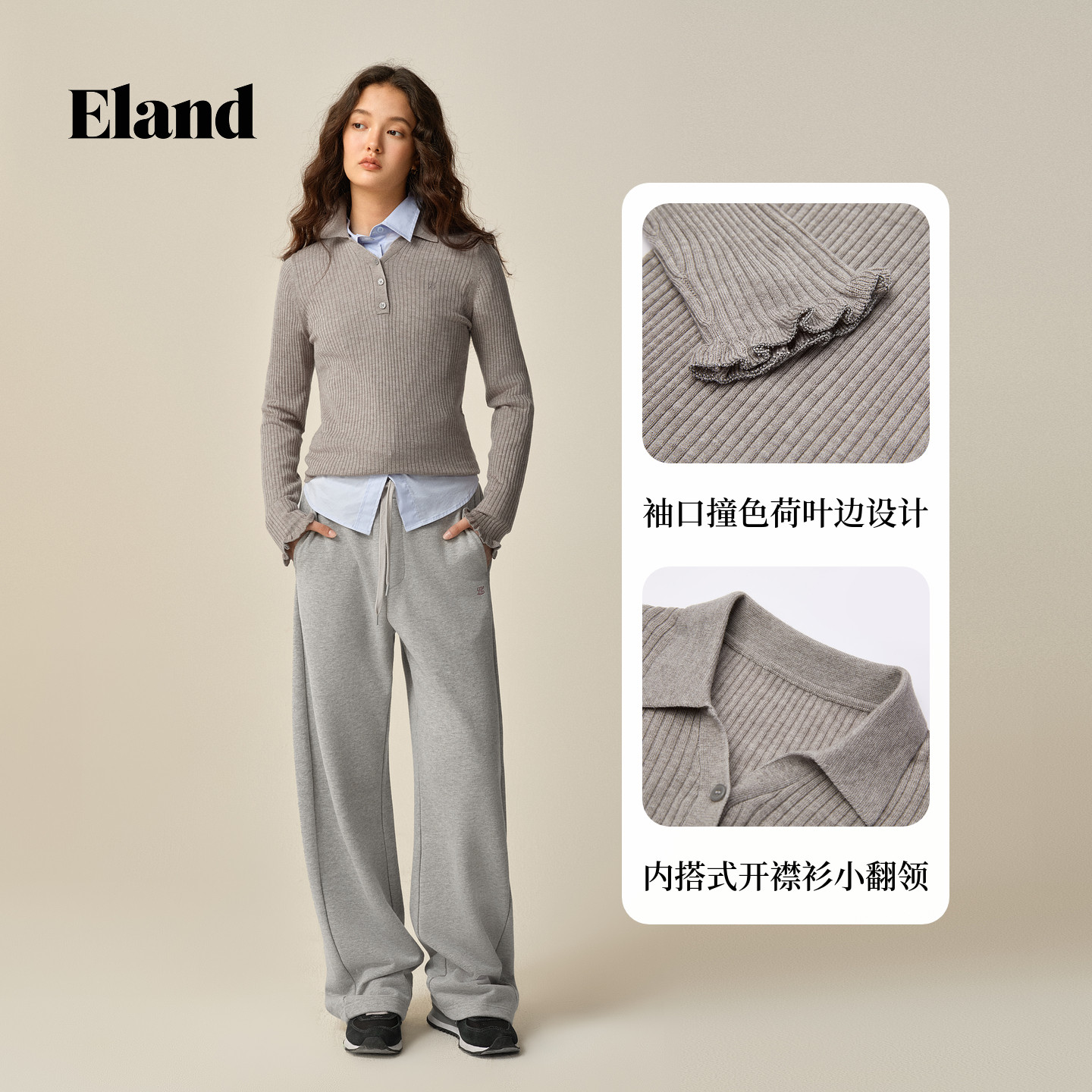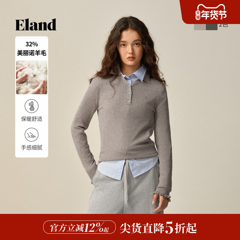 📚 Eland衣恋毛衣女柔美荷叶边袖口合身显瘦针织衫2025冬季新款