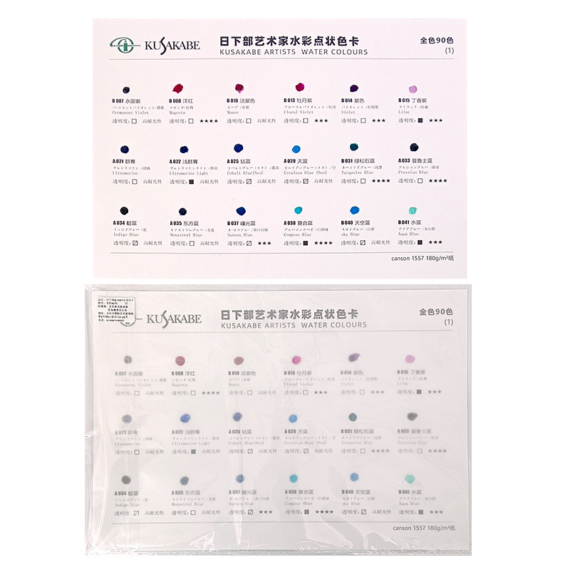 📚 进口kusakabe日下部艺术家水彩颜料点状试色卡水彩颜色分装卡90色
