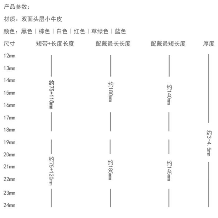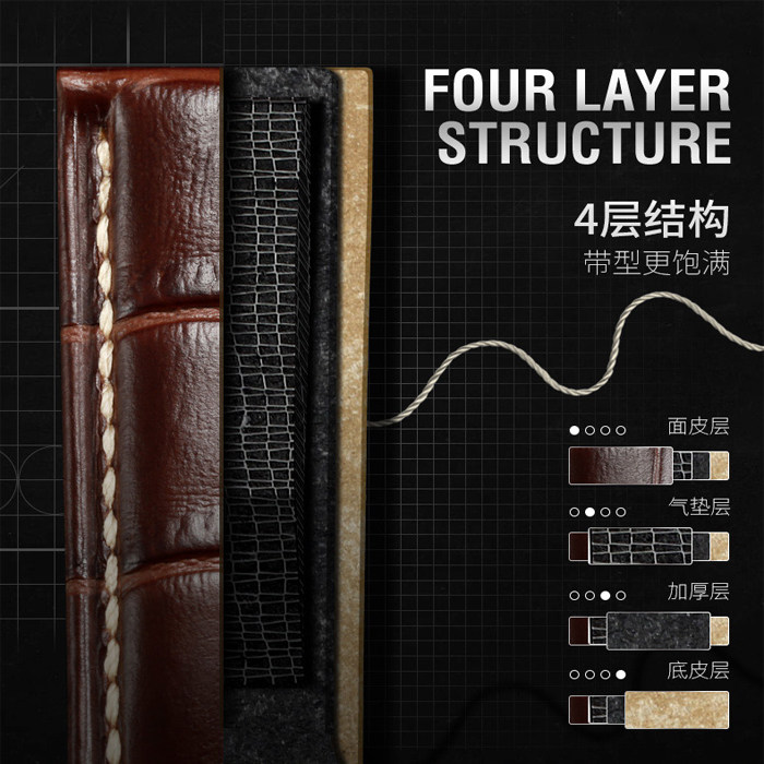 📚 米格真皮手表带时尚腕表男女防水牛皮表链 不锈钢蝴蝶扣表链配件