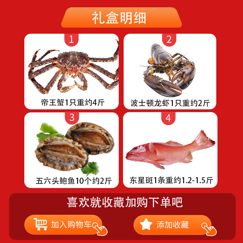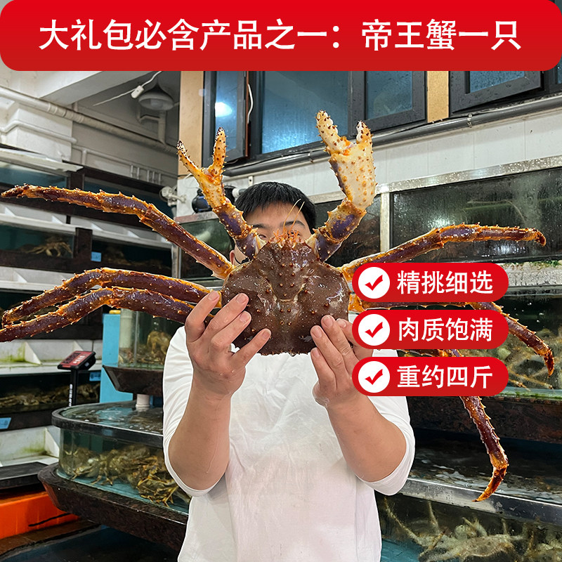 📚 进口海鲜大礼包阿拉斯加帝王蟹波士顿龙虾鲍鱼东星斑冷冻生鲜礼盒