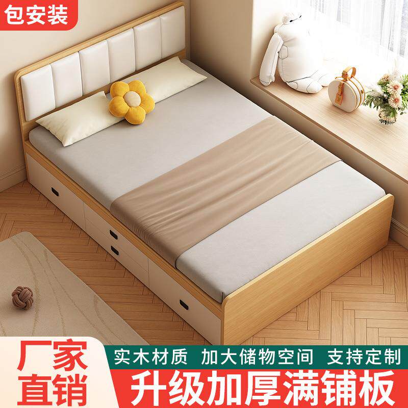 📚 z%实木榻榻米床现代简约儿童双人收纳小户型高箱体储物床柜一体定