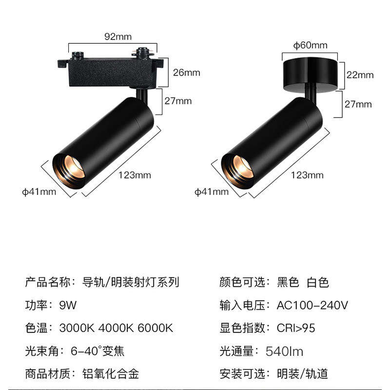 📚 射灯吸顶式可调光变焦LED轨道博物馆美术馆展厅灯照画明装COB射灯