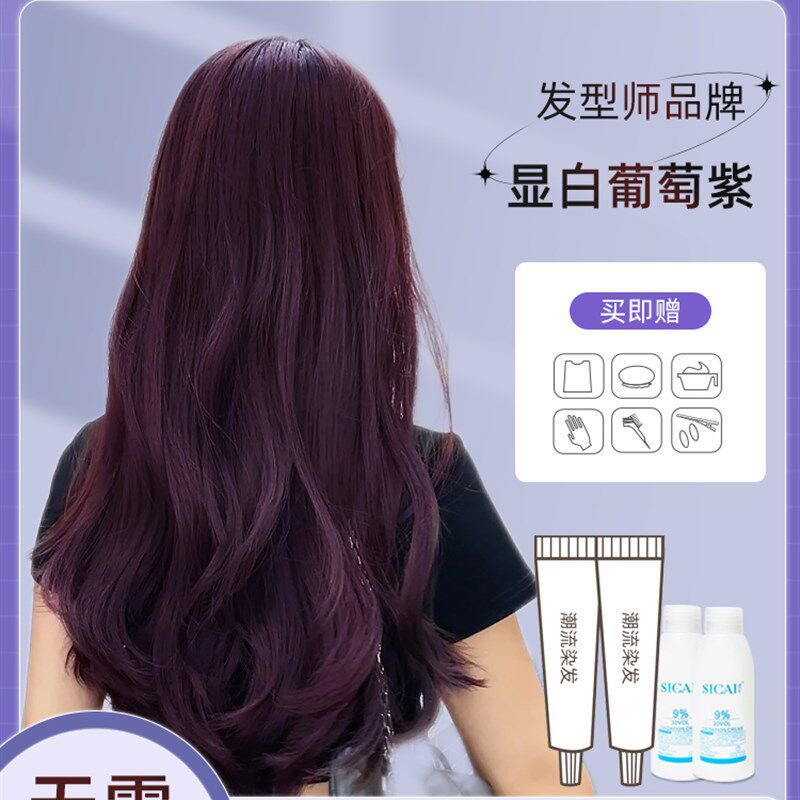 📚 树莓酒红葡萄黑紫色染发剂膏女海王红紫红粉棕色自己在家染植物纯