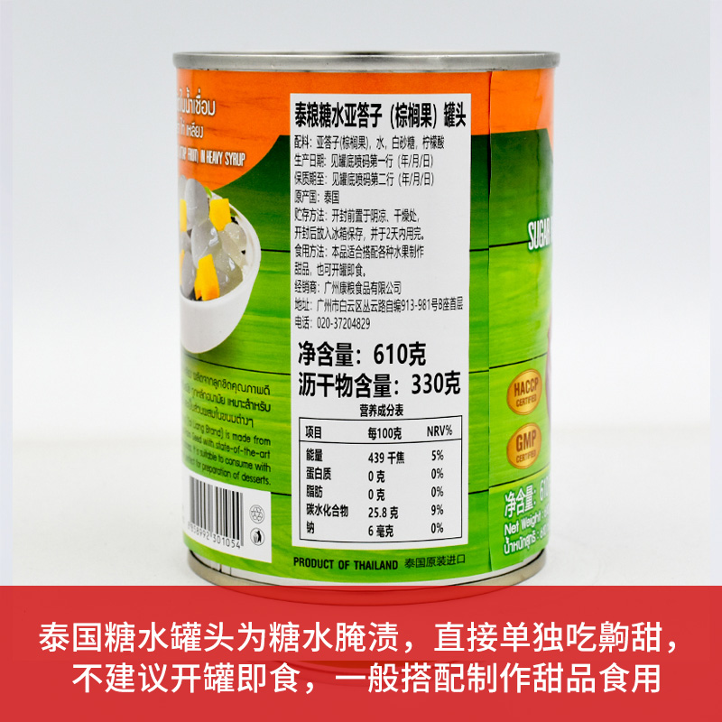 📚 泰国亚答子棕榈果水果罐610g头水妈妈亚答枳糖水亚达积达子即食