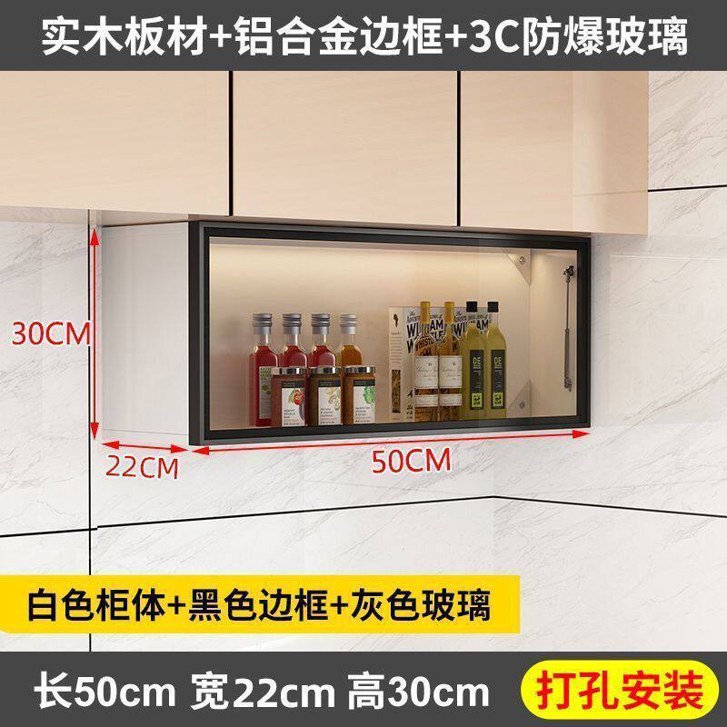 📚 2026厨房吊柜置物架壁挂式调料柜置物架简约风玻璃墙壁柜上翻储物
