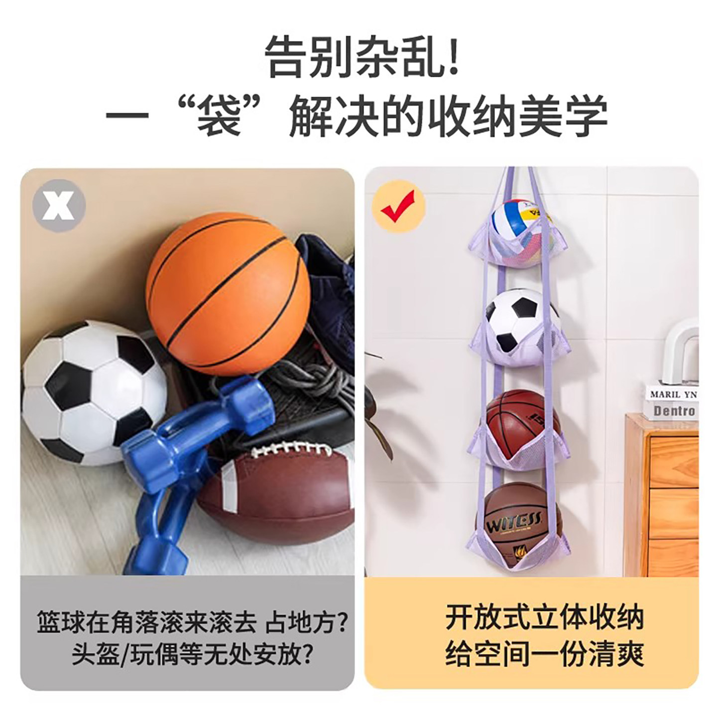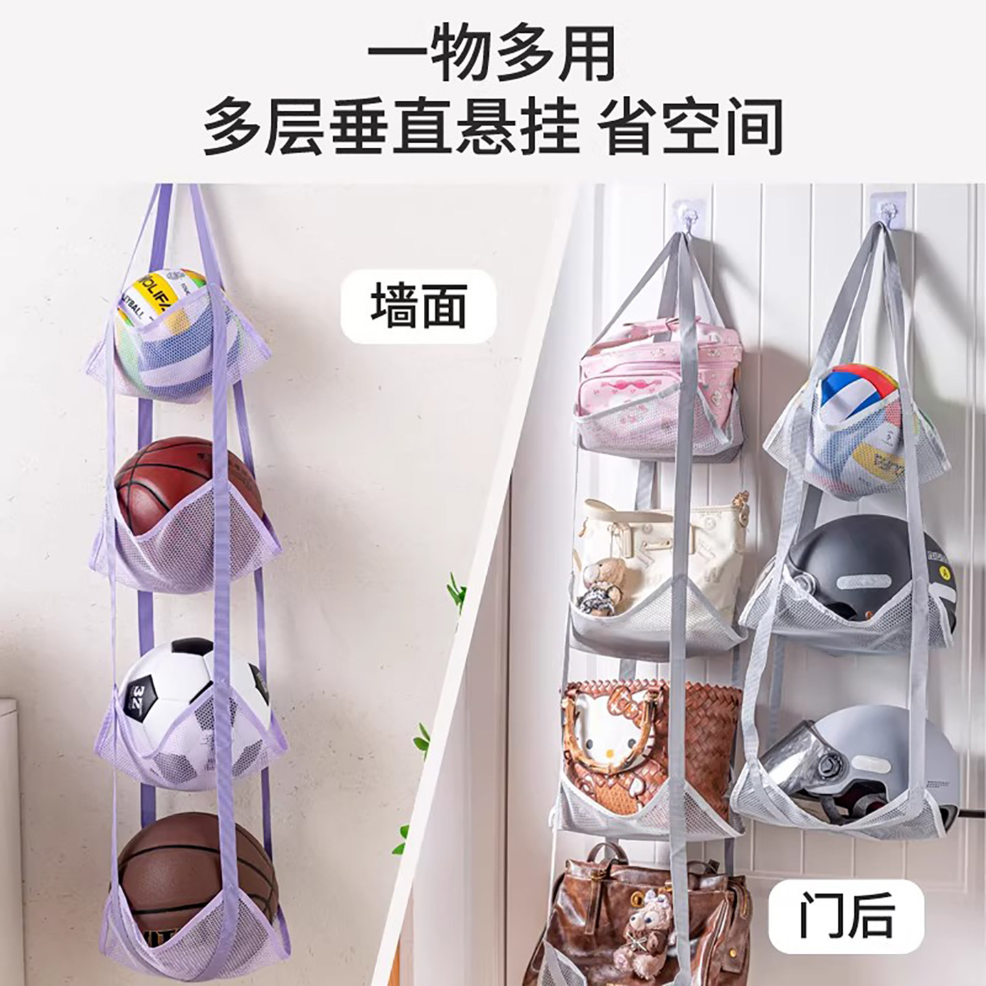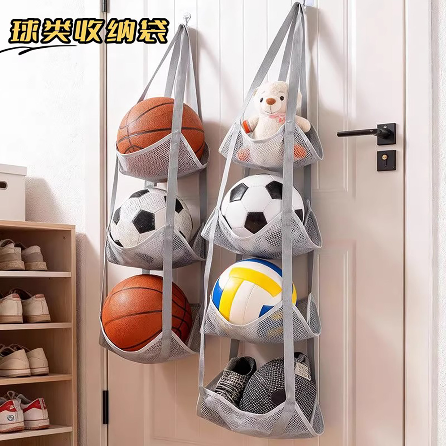 📚 球类收纳挂袋家用儿童放篮球足球收纳架子多层运动器材置物架神器