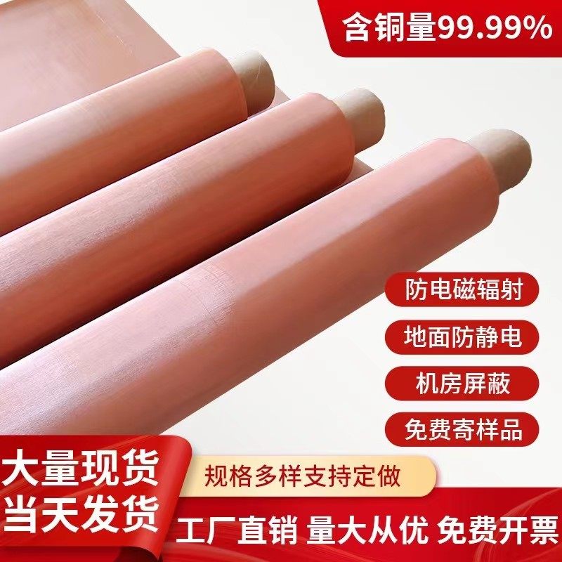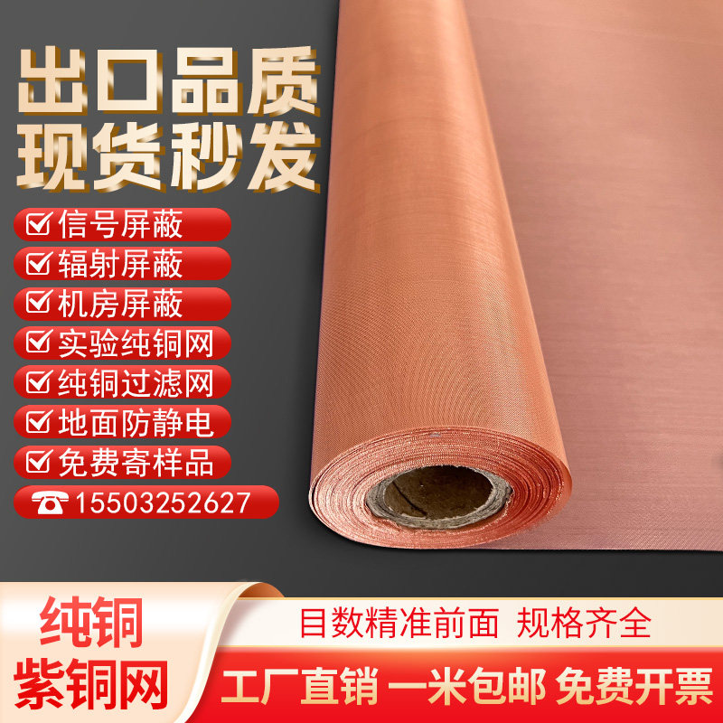 📚 紫铜网10-350目铜网实验过滤网防静电接地机房电磁信号屏蔽铜丝网