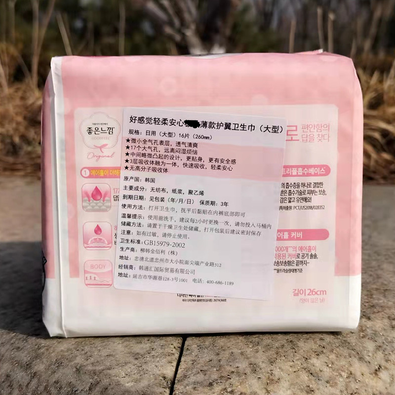 📚 韩国好感觉纯棉轻柔安心极薄款护翼卫生巾日用26cm16片无高洁丝