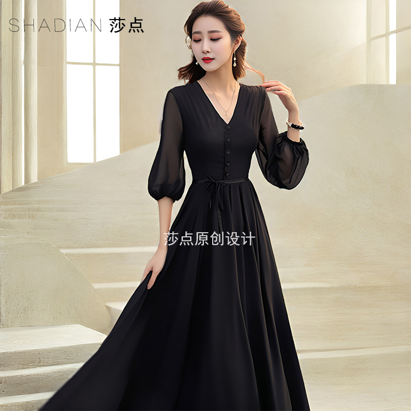 99¥ CZ009 okWJUStOZz9¥ https://m.tb.cn/h.7JY9nCX 黑色晚礼服高级感2025新款气质收腰显瘦赫本风小黑裙长款连衣裙 --------------------- 【原售价】699元 【现售价】369元。
