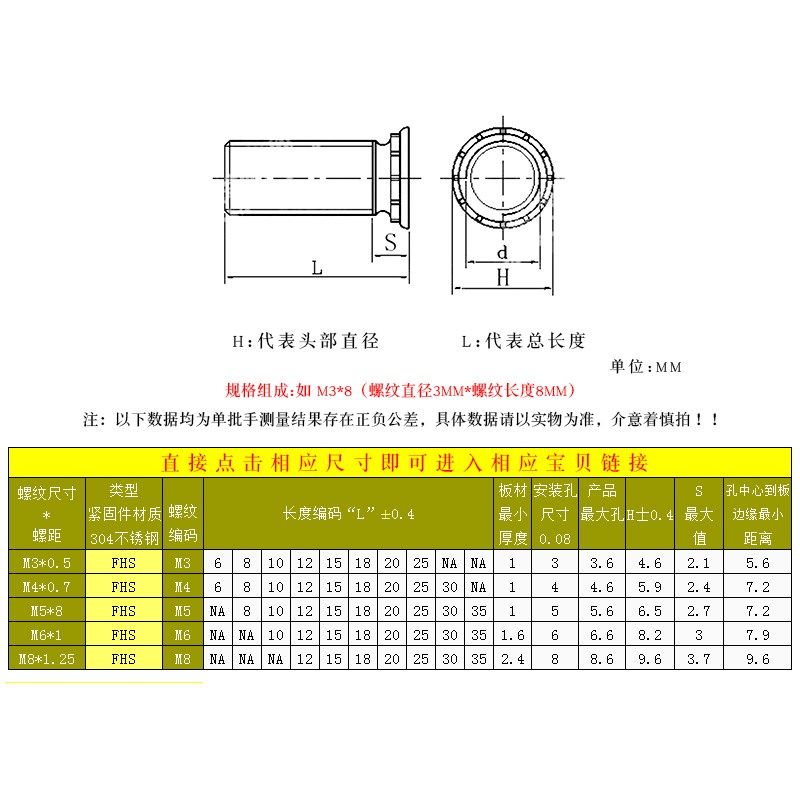 📚 304不锈钢压铆螺丝FHS压铆螺钉M8牙板板金螺丝钉压板螺丝支持定制