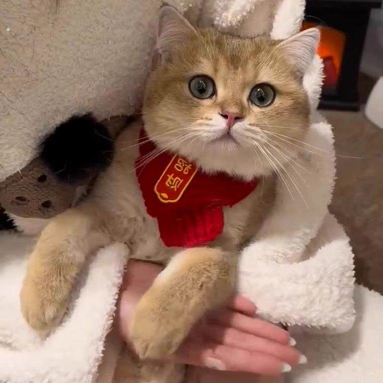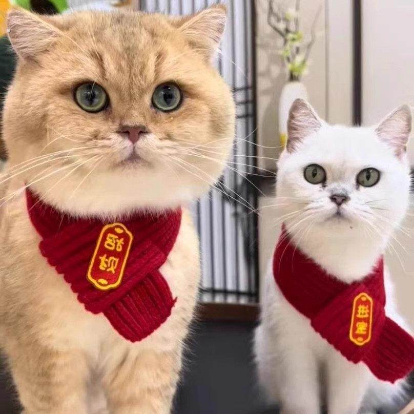 📚 猫咪新年围巾宠物围脖红色保暖中国风口水巾围兜狗狗新年装饰品