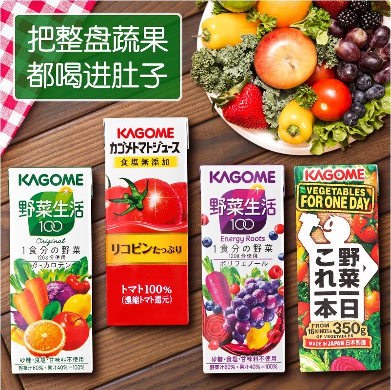 📚 日本饮料Kagome可果美野菜生活100番茄葡萄蔬菜蔬果汁整箱12瓶